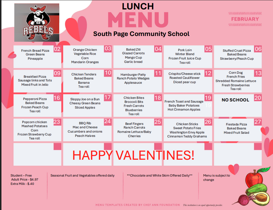 | *USDA Equal Opportunity Provider and all meals are subject to change. | |