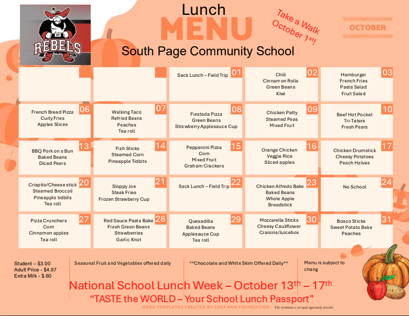 *USDA Equal Opportunity Provider and all meals are subject to change. |